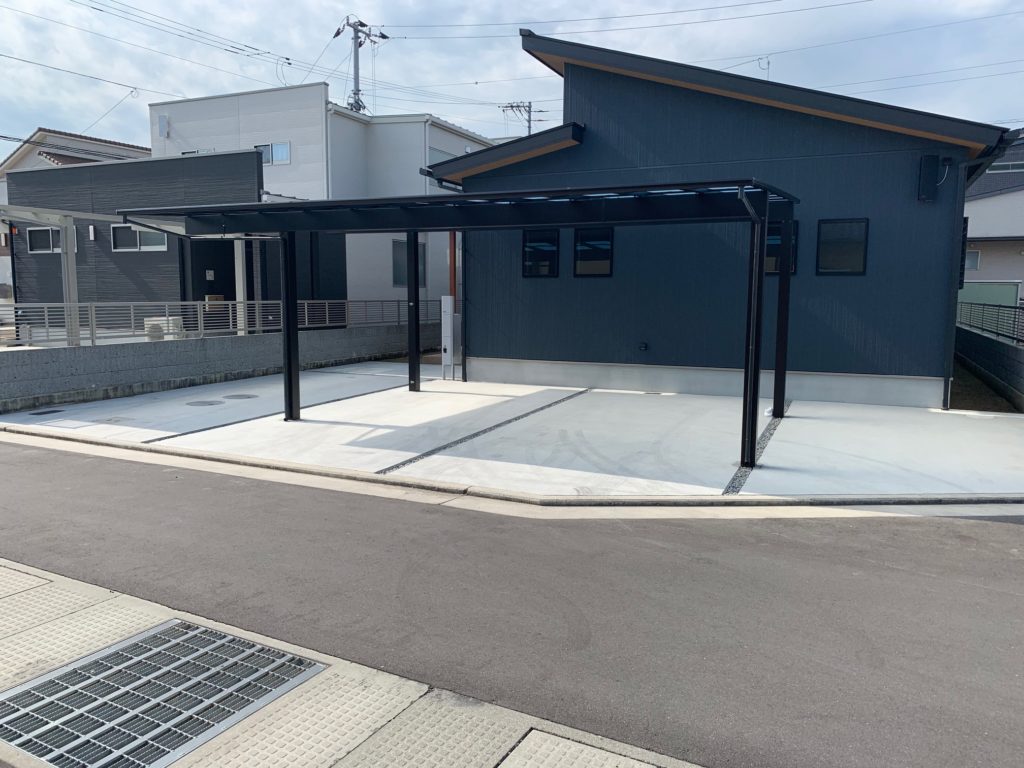 駐車スぺ-スは勿論 支柱より屋根を張り出し アプロ-チ部分にも屋根により